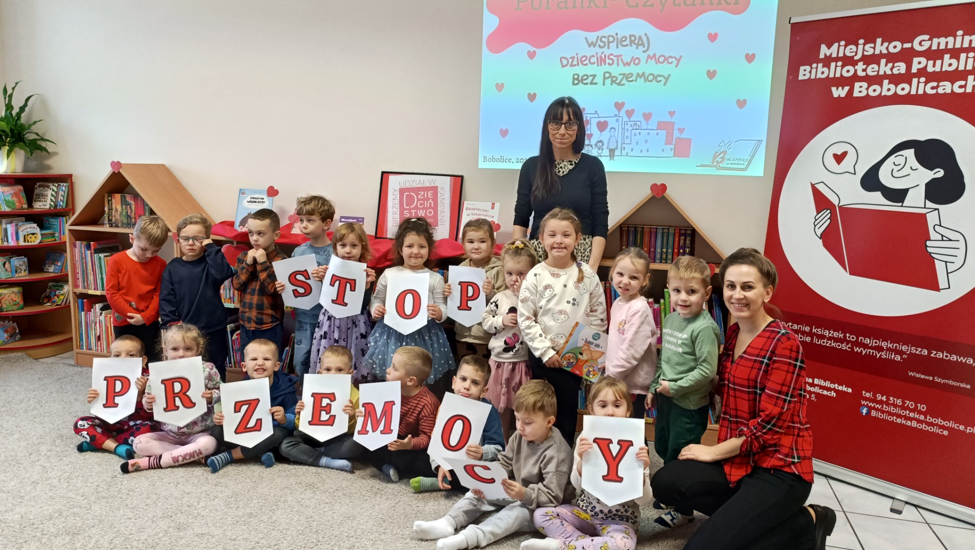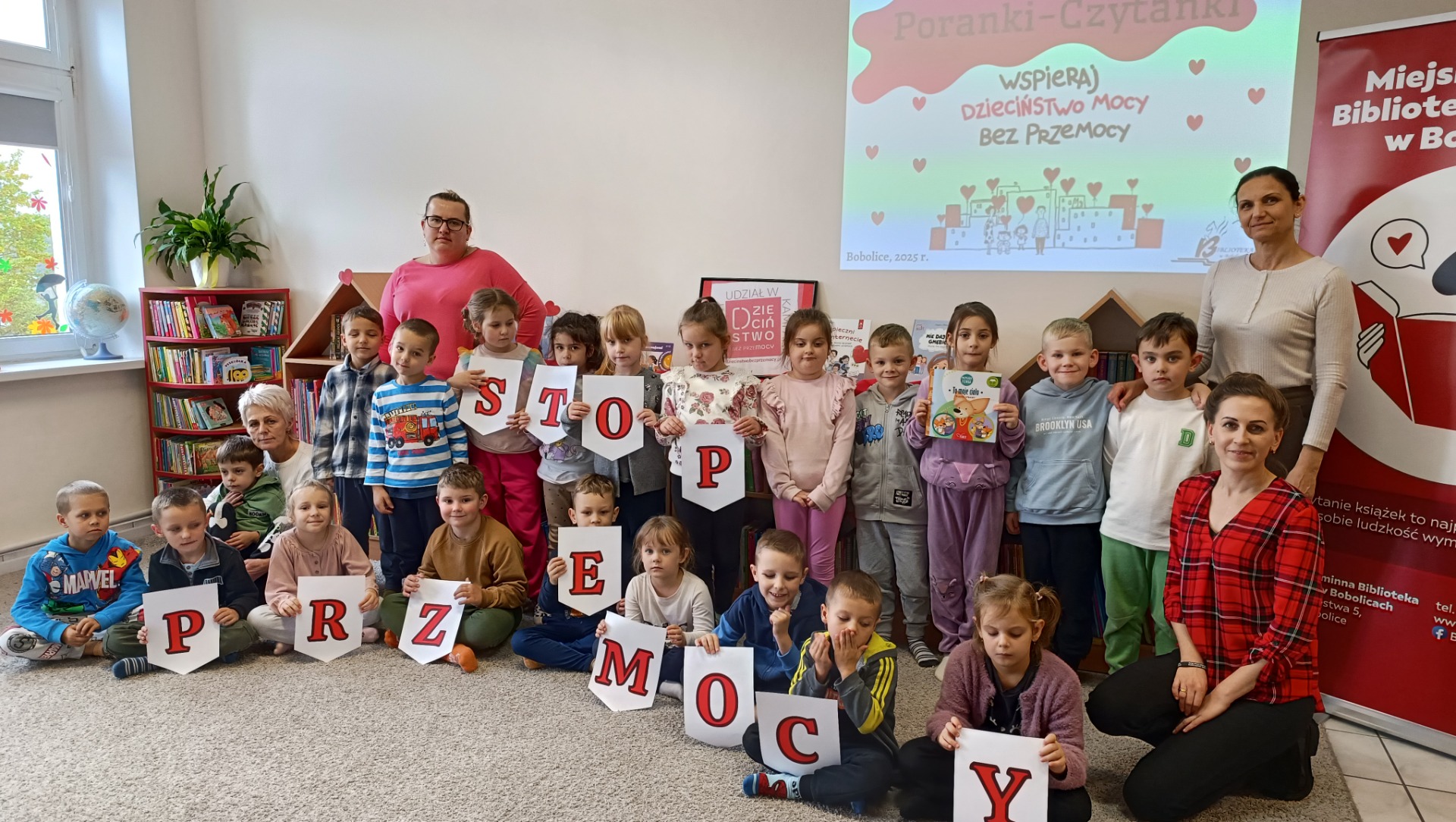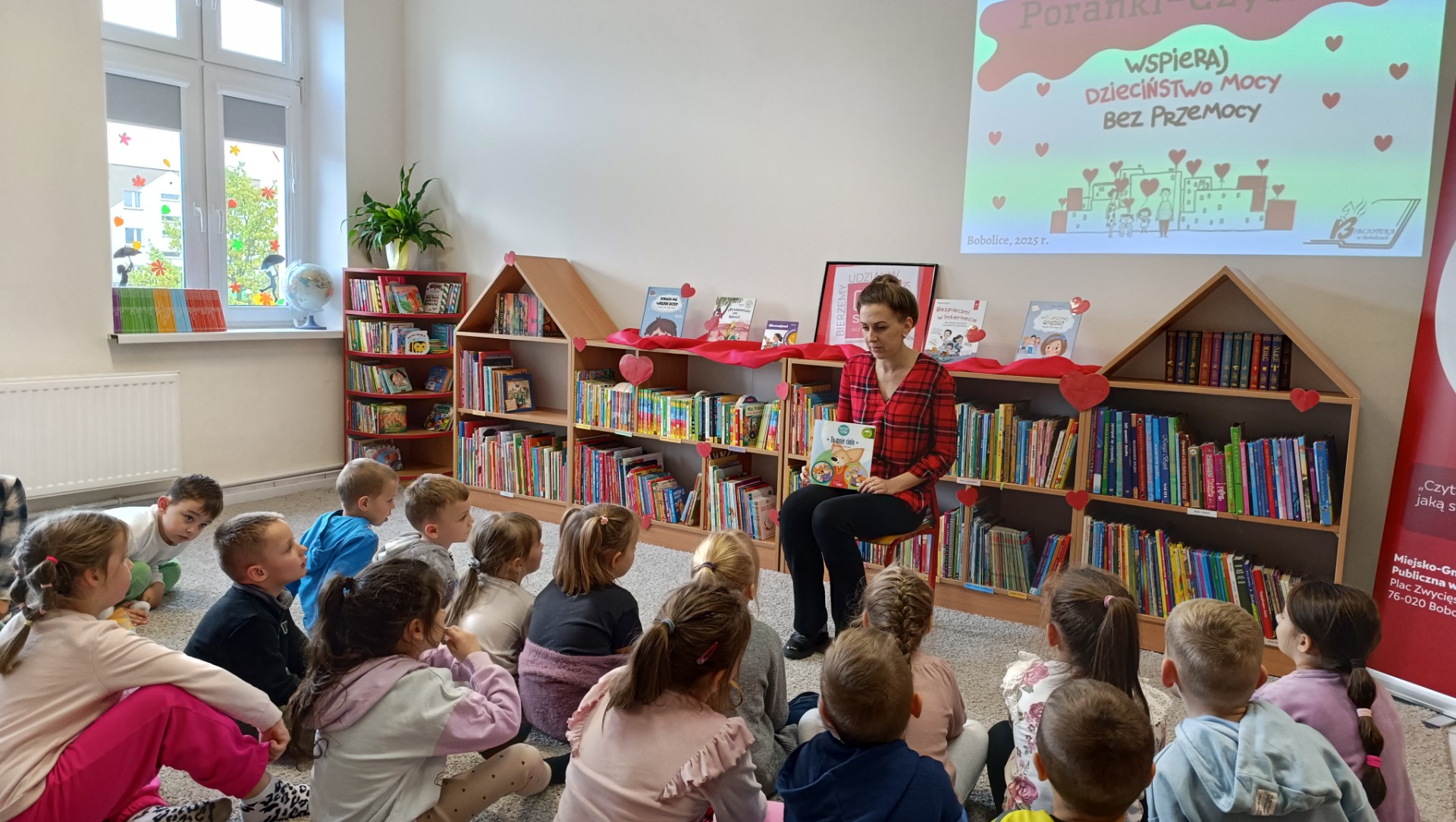 W ramach cyklicznych zajęć „Poranki-Czytanki” nasza biblioteka włączyła się w ogólnopolską kampanię „Dzieciństwo bez Przemocy”, której celem jest zwiększenie świadomości społecznej na temat praw dziecka, przeciwdziałania przemocy oraz budowania relacji opartych na szacunku, empatii i zaufaniu.