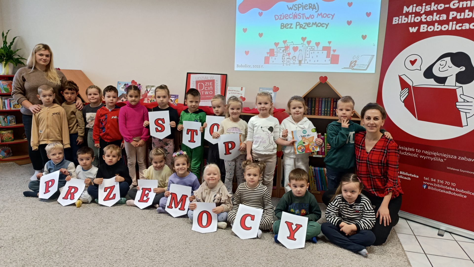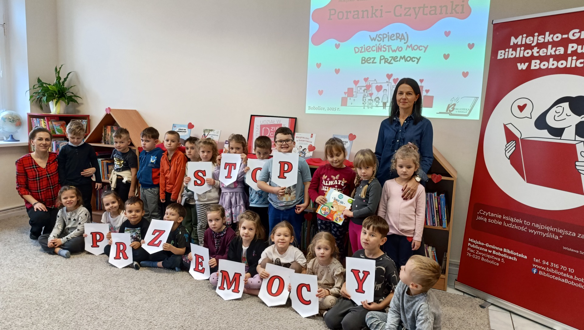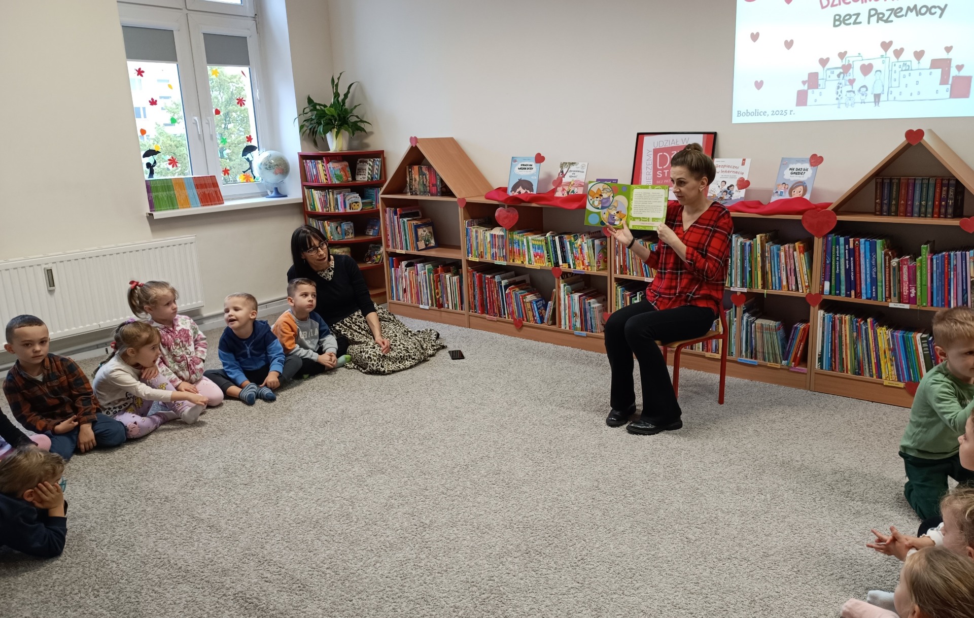 W ramach cyklicznych zajęć „Poranki-Czytanki” nasza biblioteka włączyła się w ogólnopolską kampanię „Dzieciństwo bez Przemocy”, której celem jest zwiększenie świadomości społecznej na temat praw dziecka, przeciwdziałania przemocy oraz budowania relacji opartych na szacunku, empatii i zaufaniu.