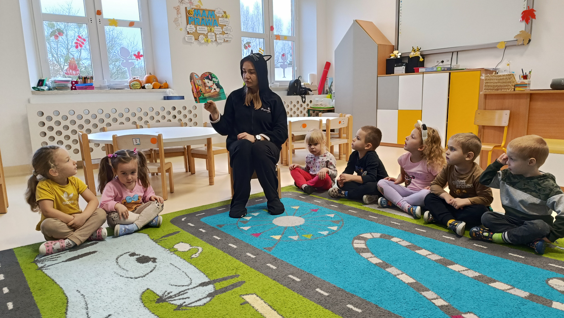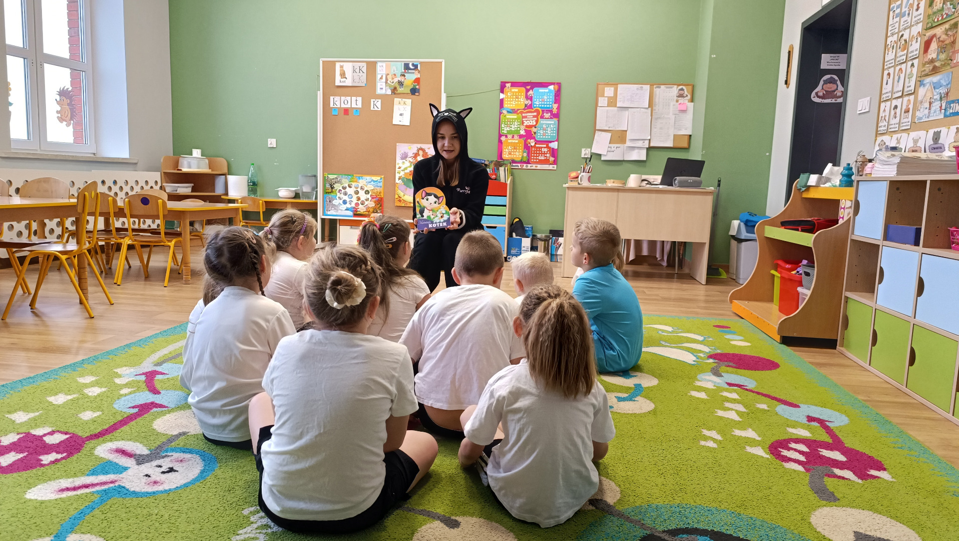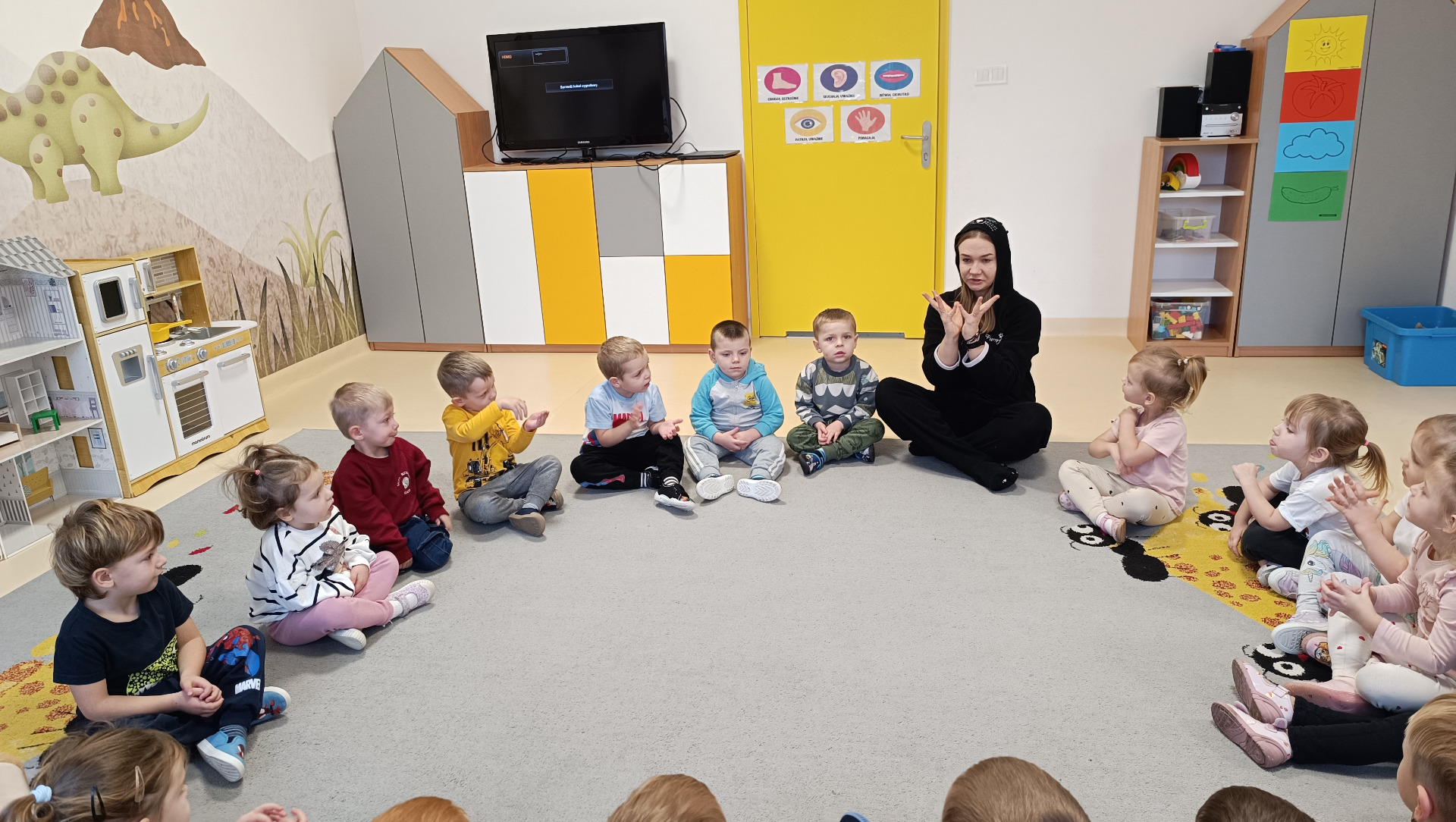 Maluchy wysłuchały wzruszającego opowiadania „Nieśmiały kotek”-ciepłą, pełną uroku opowieść o małym kotku, który krok po kroku przełamuje swoją nieśmiałość i odkrywa, że świat wcale nie jest taki straszny. To historia, która uczy odwagi, przyjaźni i wiary w siebie. Przedszkolaki świetnie bawiły się również podczas muzycznej zabawy „Pięć małych kotków”.
