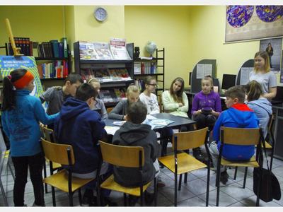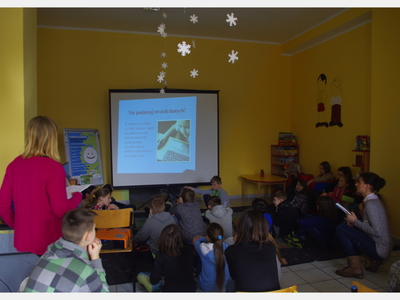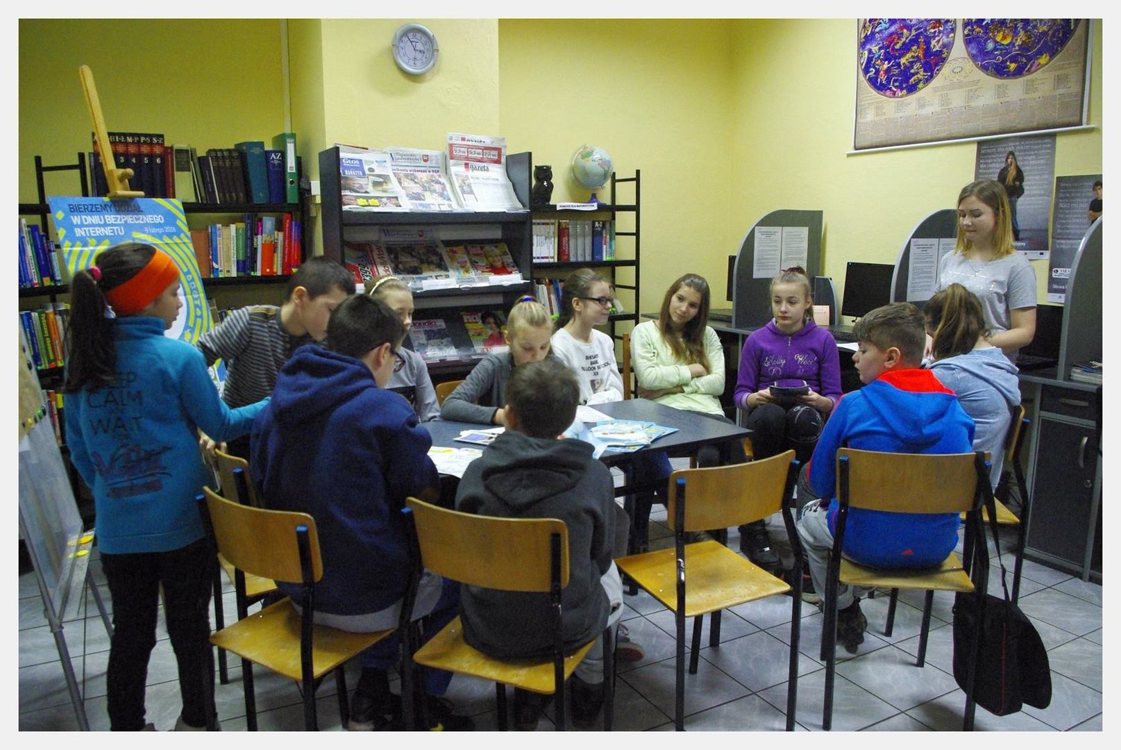 W bibliotece podczas ferii zimowych zorganizowane zostały zajęcia dla dwóch grup wiekowych. Pierwsze warsztaty odbyły się 9 lutego dla dzieci w wieku od 10 do 13 lat. Uczestnicy po obejrzeniu trzech filmików dotyczących bezpieczeństwa w sieci mieli za zadanie stworzyć kodeks zasad bezpiecznego korzystania z Internetu. Świetnie sobie poradzili z tym zadaniem. Kolejnym punktem zajęć było stworzenie definicji „cyberprzemocy” i wypisanie przykładów tego zjawiska. Na zakończenie zajęć na uczniów czekały ćwiczenia dotyczące sposobów reagowania w sytuacji zagrożenia prywatności online , które musieli wykonać w grupach. Młodzież zapoznała się również ze stronami internetowymi, z których mogą bezpiecznie korzystać.
