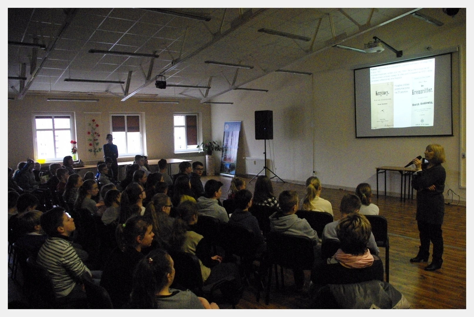 22 lutego 2016 r. po raz drugi mieliśmy przyjemność gościć w naszej bibliotece Panią Cecylię Judek- sekretarza naukowego Książnicy Pomorskiej w Szczecinie. W spotkaniu udział wzięły klasy: VIa, VIb, VIc ze Szkoły Podstawowej w Bobolicach. Wykład poświęcony był patronowi roku 2016- Henrykowi Sienkiewiczowi.Uczniowie mieli okazję zapoznać się z twórczością pisarza, dowiedzieć się wielu interesujących faktów z jego życia. Pani Cecylia w niezwykle przystępny sposób przybliżyła uczestnikom postać naszego polskiego noblisty. Na koniec spotkania dzieci nagrodziły Panią Cecylię brawami, a wręczając kwiaty podziękowali za przyjazd i bardzo interesującą opowieść o Henryku Sienkiewiczu.