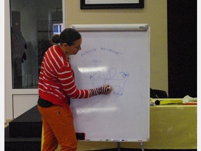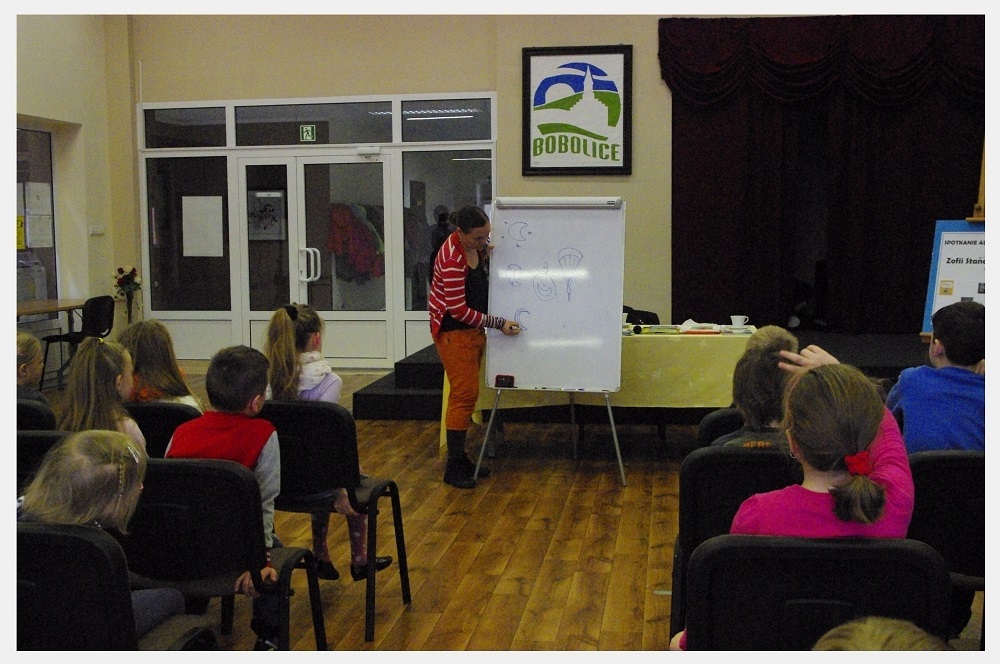 Pani Zofia przeczytała uczestnikom fragmenty swoich najpopularniejszych książek, przygotowała również zadania i ćwiczenia pobudzające wyobraźnię dzieci. Opowiedziała o zawodzie pisarza, o tym w jaki sposób tworzy się książkę, ile osób jest zaangażowanych w jej powstanie . Ciekawym momentem spotkania było wcielenie się autorki w postać swojej bohaterki książkowej- Basi. Dzieci z wielkim zaciekawieniem słuchały, a następnie zadawały pytania.