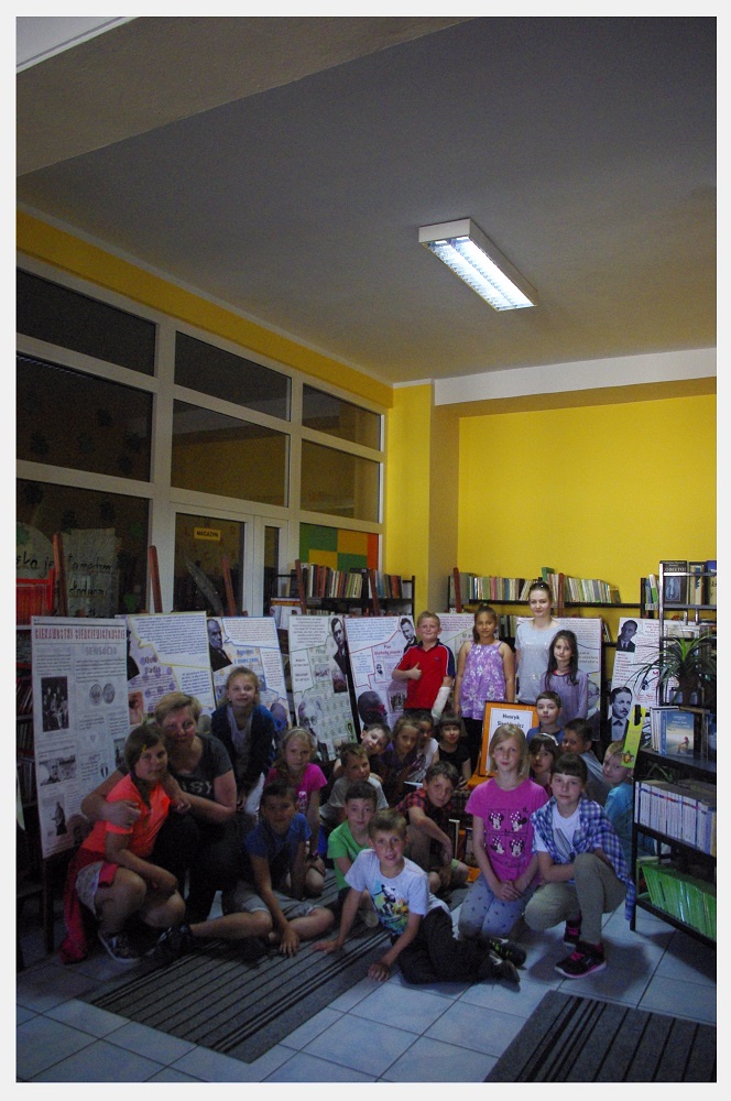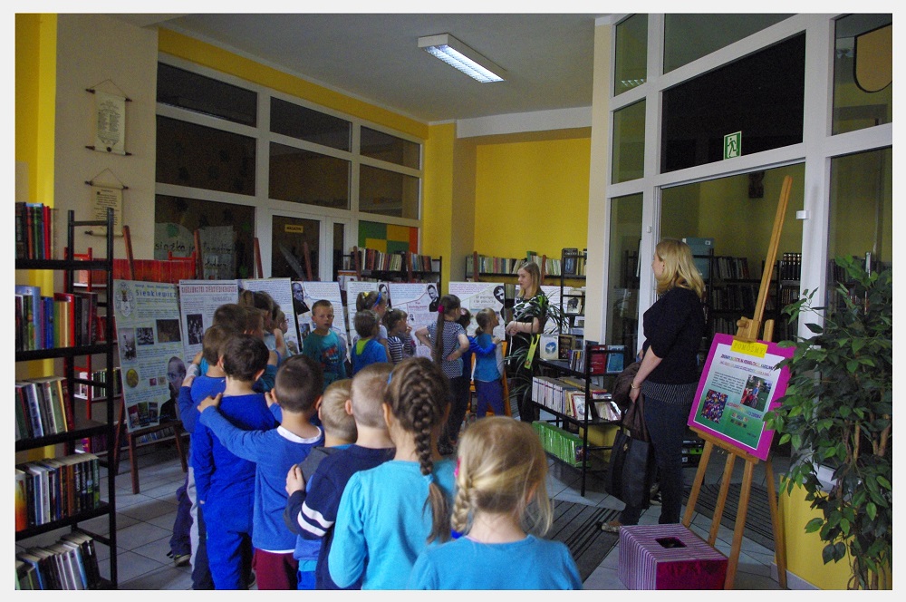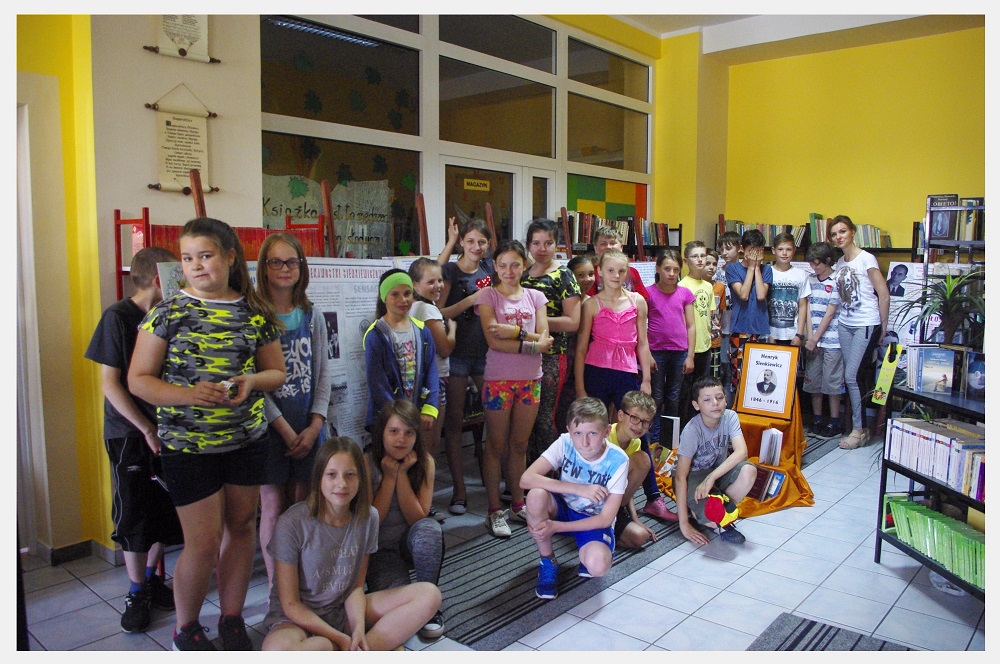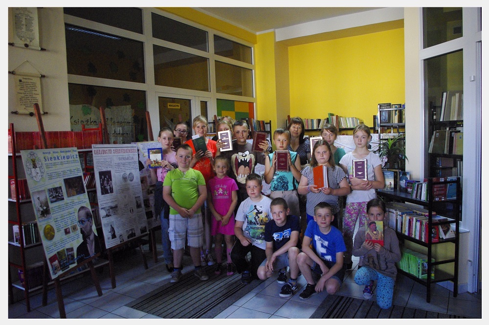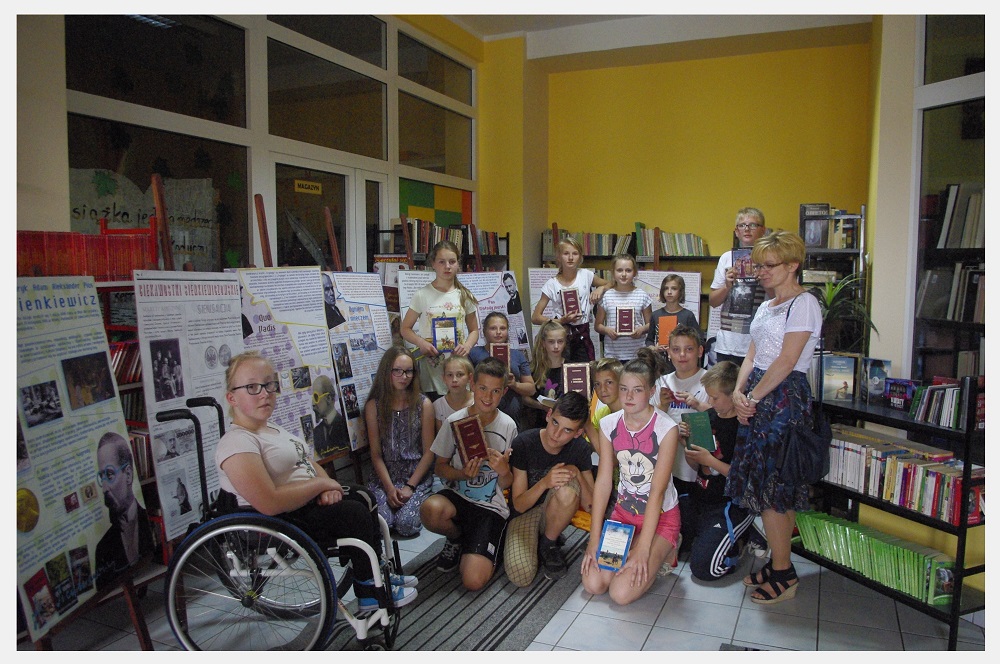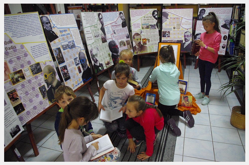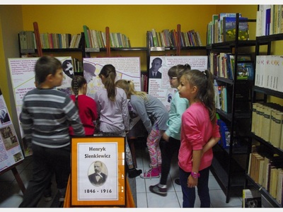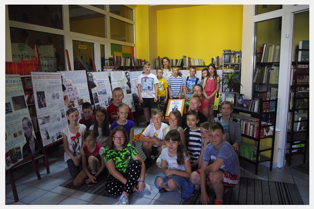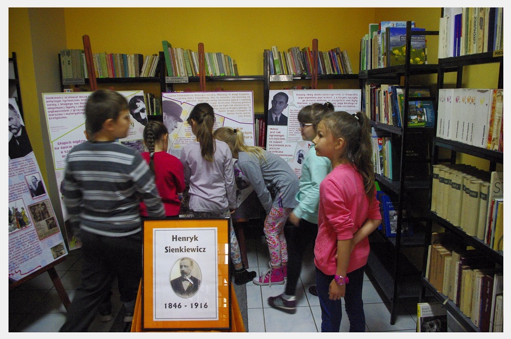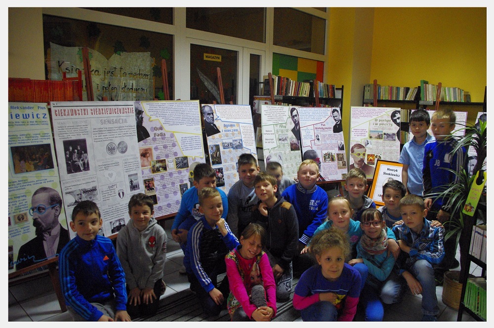 Od 16 do 31 maja w Miejsko- Gminnej Bibliotece można było zwiedzać wystawę pn. „Sienkiewicz wciąż obecny, wystawa w 100 rocznicę śmierci”. Oprócz wystawy dla uczestników zajęć przygotowana została prezentacja multimedialna dotycząca życia i twórczości Sienkiewicza. Natomiast podsumowaniem każdego spotkania był quiz. Byłyśmy pod dużym wrażeniem, jak wiele informacji dzieci zapamiętały o naszym polskim nobliście. W zajęciach udział wzięli uczniowie ze Szkoły Podstawowej w Bobolicach, Drzewianach i Kurowie, co daje ogółem 367 uczestników. Jeszcze raz serdecznie dziękujemy dzieciom oraz wychowawcom za tak liczne przybycie