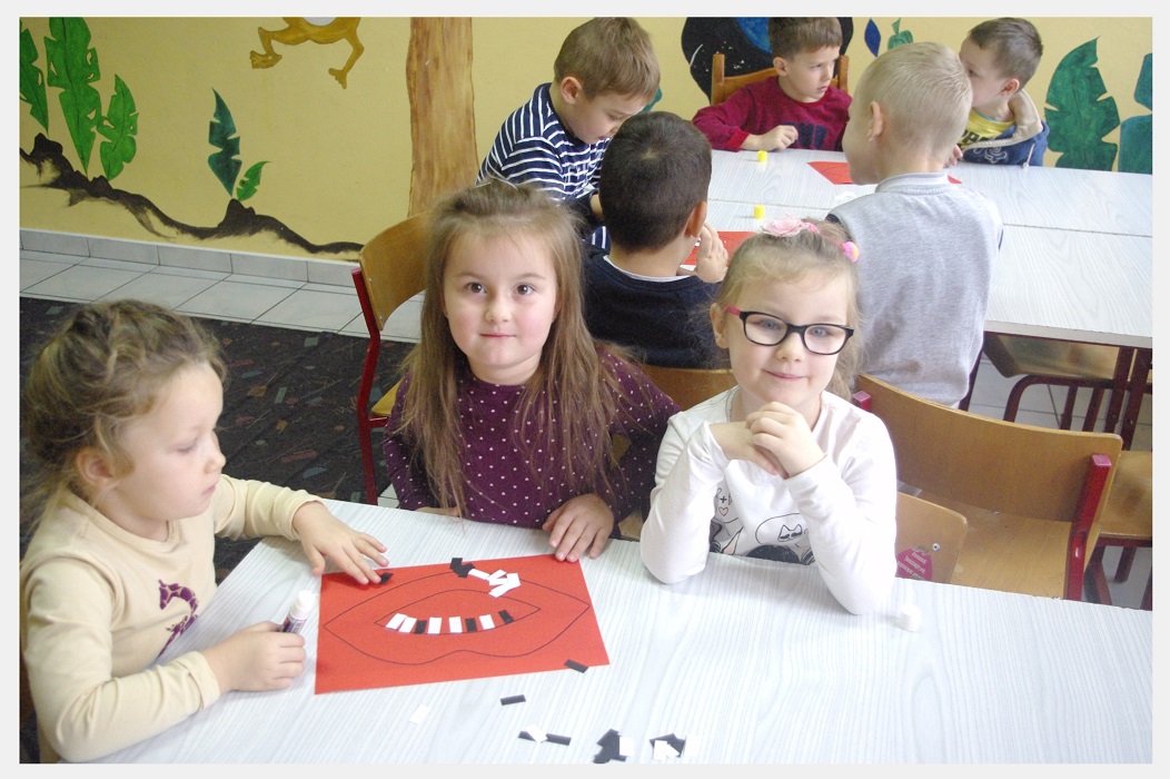 Na początku spotkania obyła się projekcja filmu pt. ,,Oj jak mnie boli ząb”, następnie przeprowadzona została pogadanka , dzięki której maluszki dowiedziały się jak należy dbać o zęby, jak chronić je przed próchnicą, jak często należy odwiedzać dentystę. Następnie przedszkolaki miały za zadanie ułożyć w kolejności obrazki przedstawiające czynności związane z myciem ząbków. Dzieci nauczyły się również piosenki pt.,,Hymn zdrowych dzieciaków”