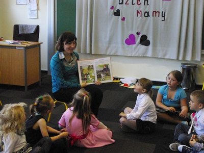 Pani Sylwia Czarnecka odwiedziła wszystkie grupy przedszkolaków w Bobolicach i kontynuowała czytanie bajki z serii przygód Reksia pt. „Koncert”. Po wszystkim zaprosiła dzieci do wspólnej zabawy w „Raz, dwa, trzy, Baba Jaga patrzy”. Wszyscy ochoczo się bawili rozgrzewając się przed występem dla swoich mam 🙂