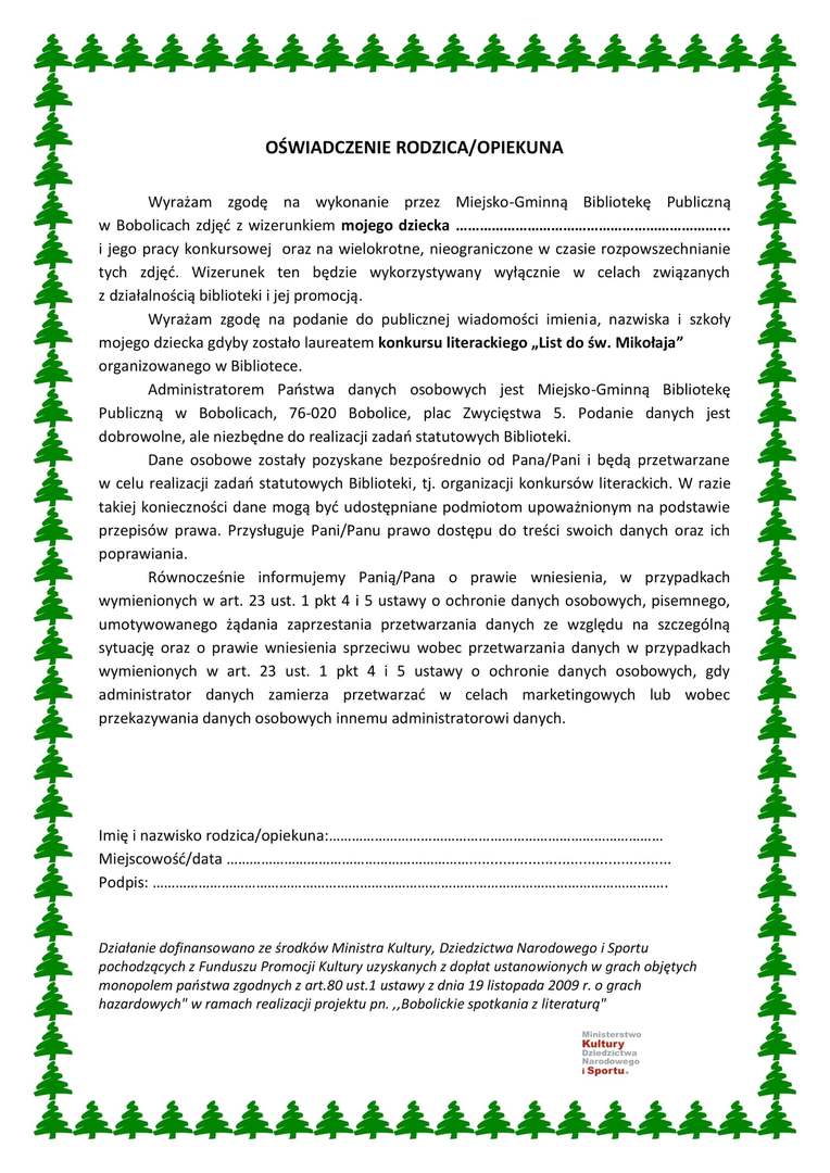 Działanie dofinansowano ze środków Ministra Kultury, Dziedzictwa Narodowego i Sportu pochodzących z Funduszu Promocji Kultury uzyskanych z dopłat ustanowionych w grach objętych monopolem państwa zgodnych z art.80 ust.1 ustawy z dnia 19 listopada 2009 r. o grach hazardowych” w ramach realizacji projektu pn. ,,Bobolickie spotkania z literaturą”.