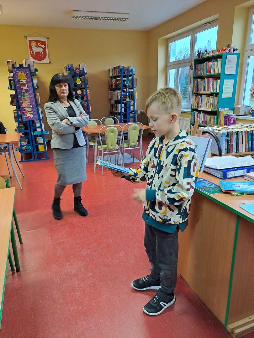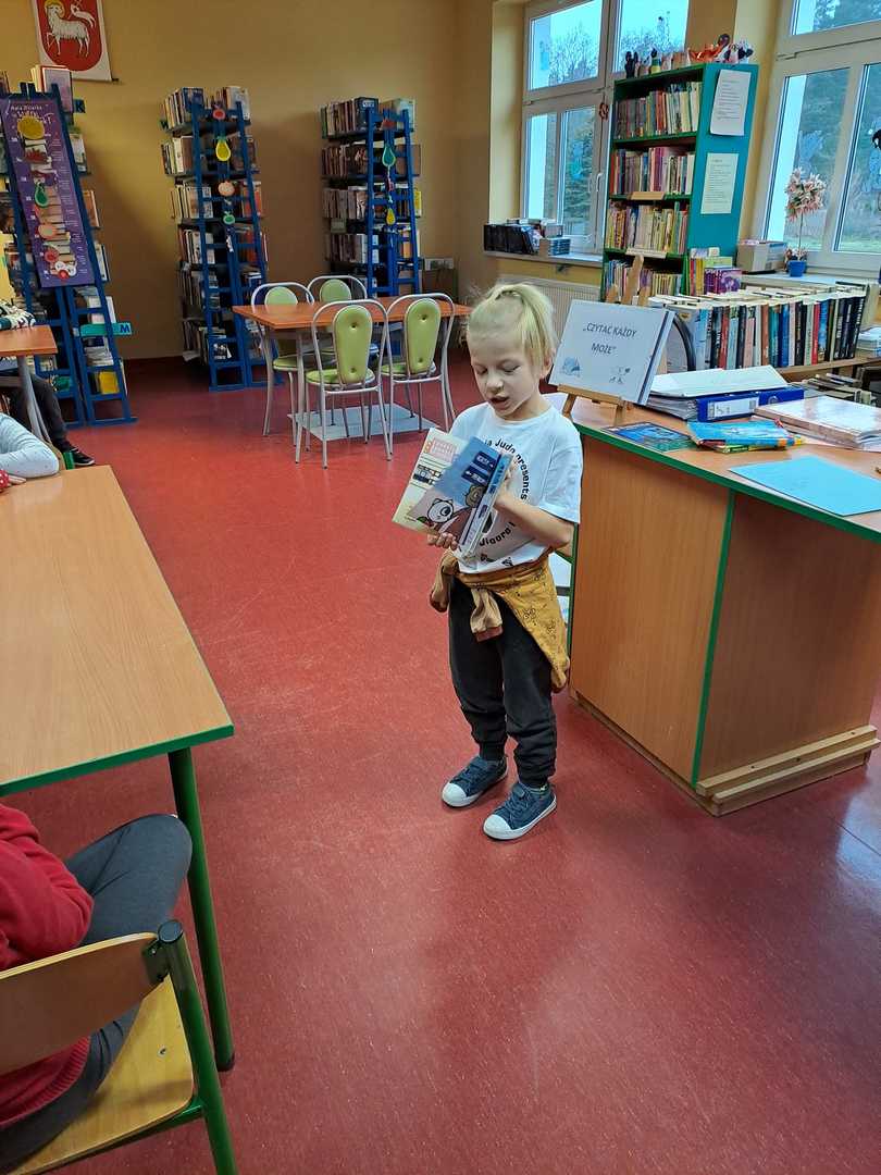 W dniu dzisiejszym czytelnicy z Dargini podczas zajęć "Czytam sobie w bibliotece " wysłuchali opowiadania o przeczytanych książkach Nadii, Filipa i Kuby.