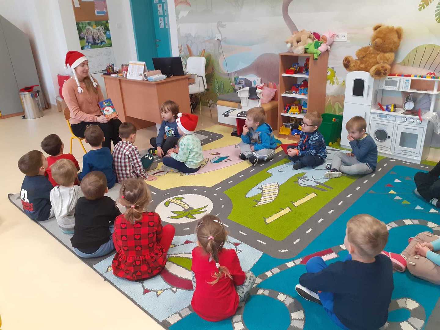 Dzieci wysłuchały bajki o przygodach bałwanka i wspólnie zatańczyły do piosenki "Tup, tup, tup po śniegu". Ho, ho, ho Wesołych Świąt!