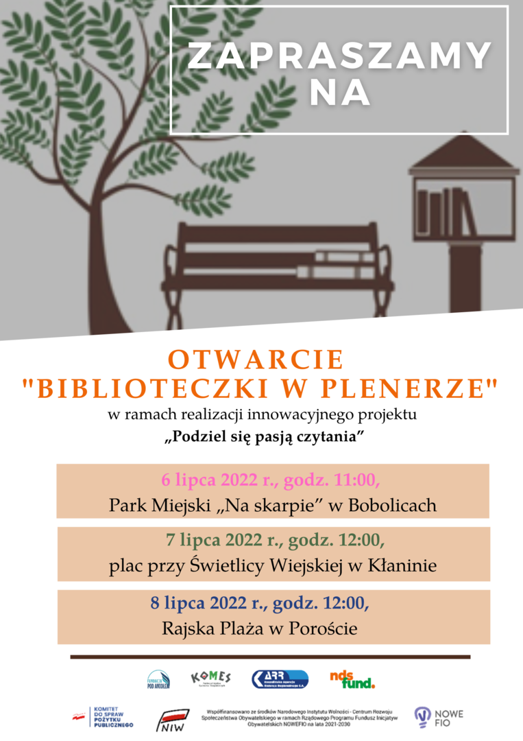 Otwarcie "Biblioteczki w plenerze" w ramach realizacji innowacyjnego projektu "Podziel się pasją czytania".